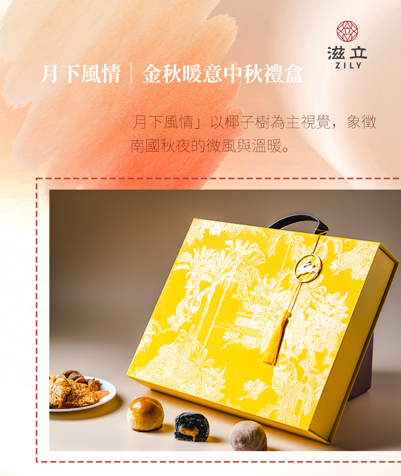 「月下風情」以椰子樹為主視覺,傳遞南國金秋的暖意。
