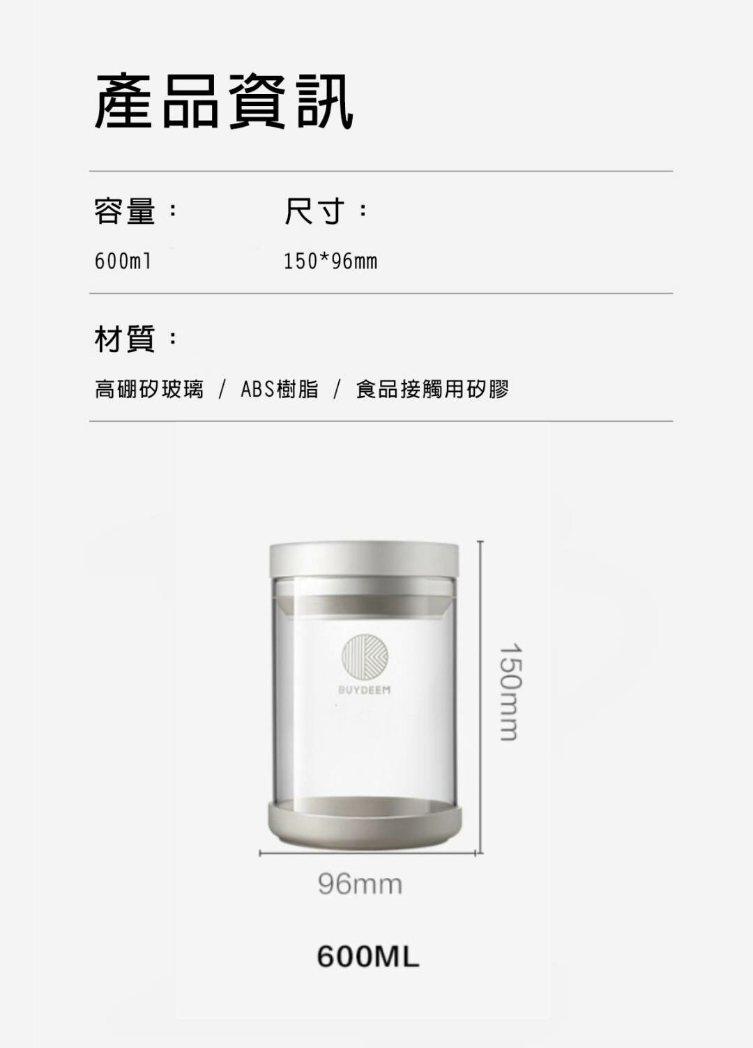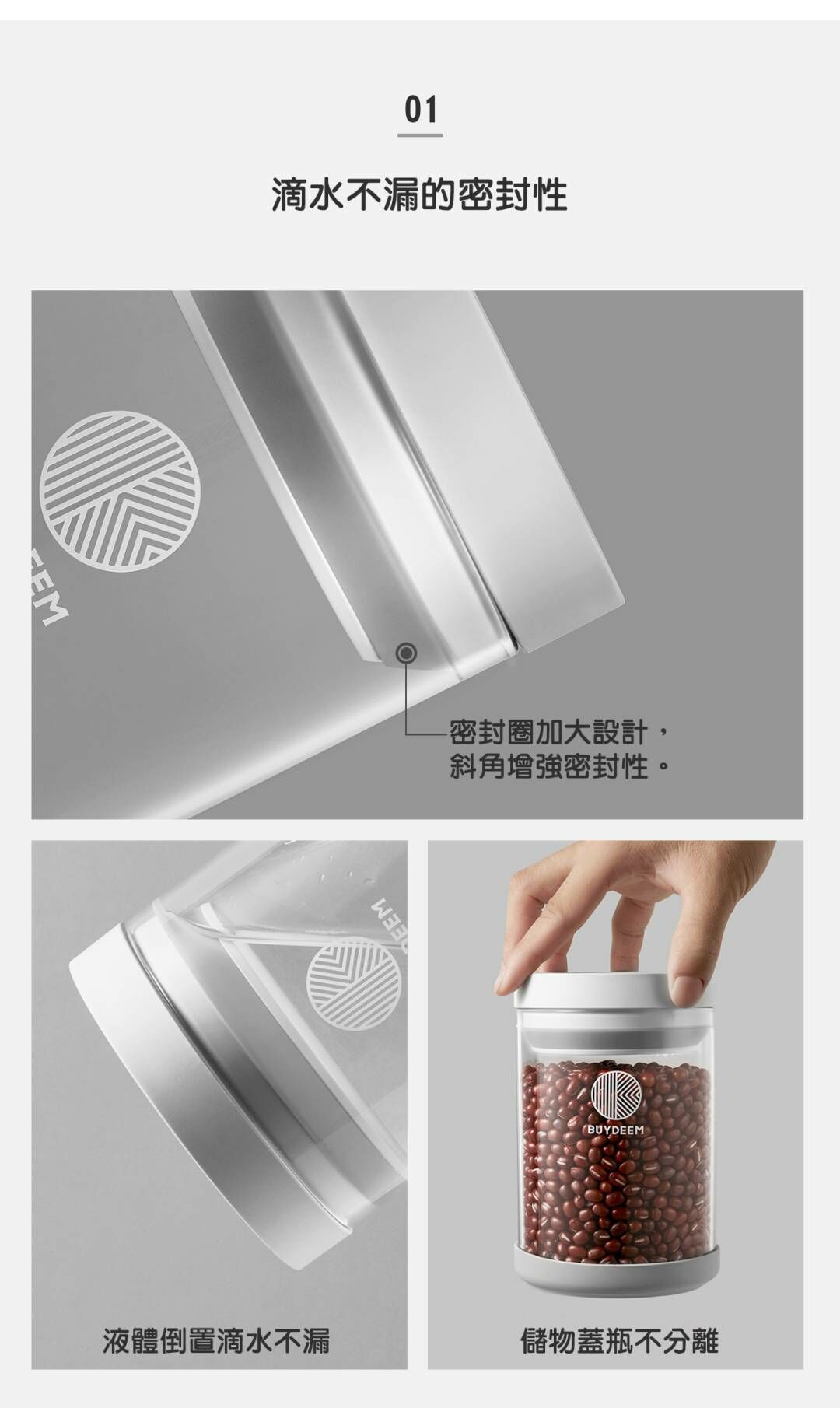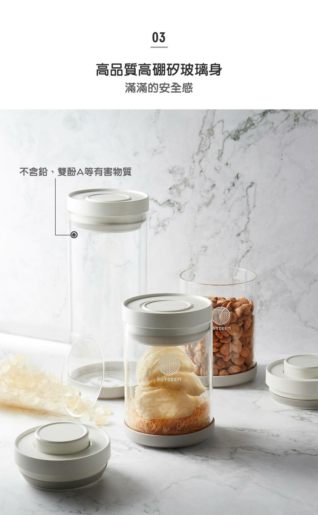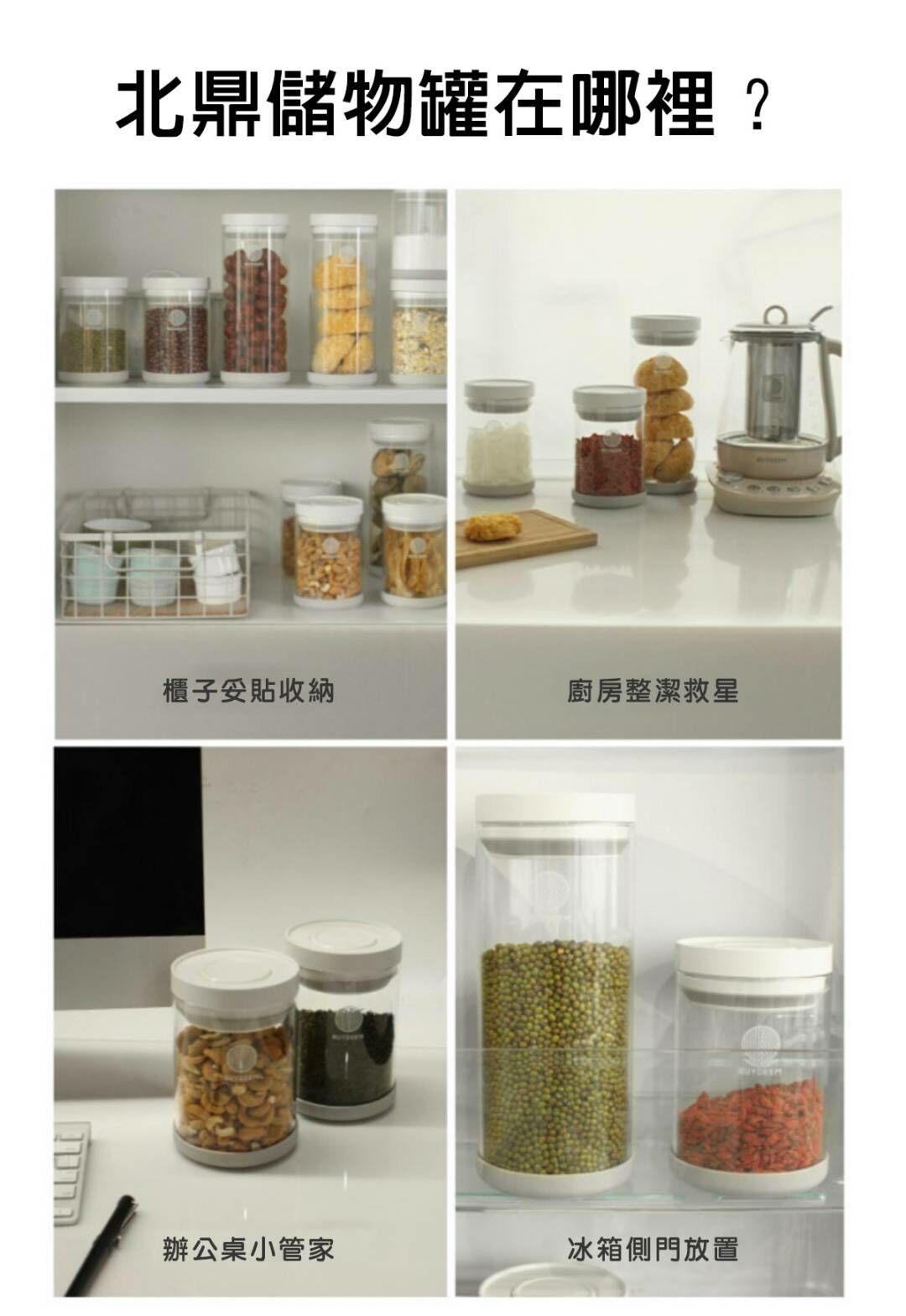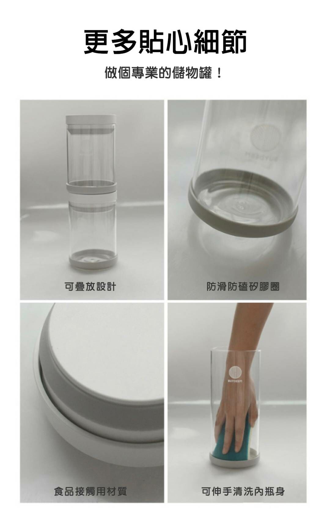 BUYDEEM北鼎密封收納罐-讓生活井然有序的儲物小幫手。按壓式開蓋讓你彈指間輕鬆開啟瓶罐,玻璃瓶身乾淨透亮,讓食材清晰可見。