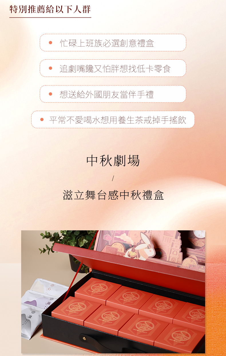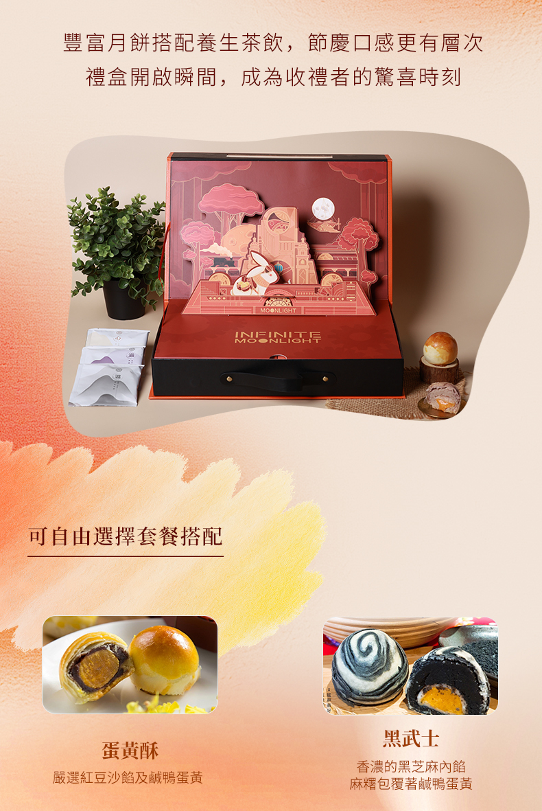 外觀別緻、內容豐富,搭配經典月餅與滋立漢方草本養生茶,不僅是味蕾的饗宴,更是拍照打卡的熱門焦點!
